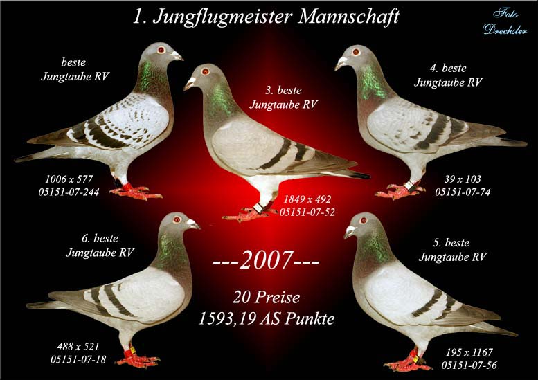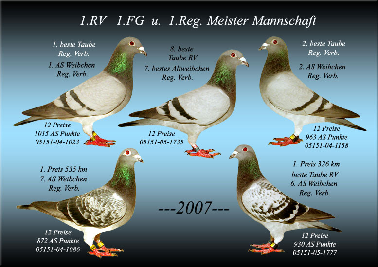 Startseite --- Schlaganlage --- Zuchtaufbau --- Erfolge ---Leistungstauben ---Zuchtpaare Erfolge 2007 |