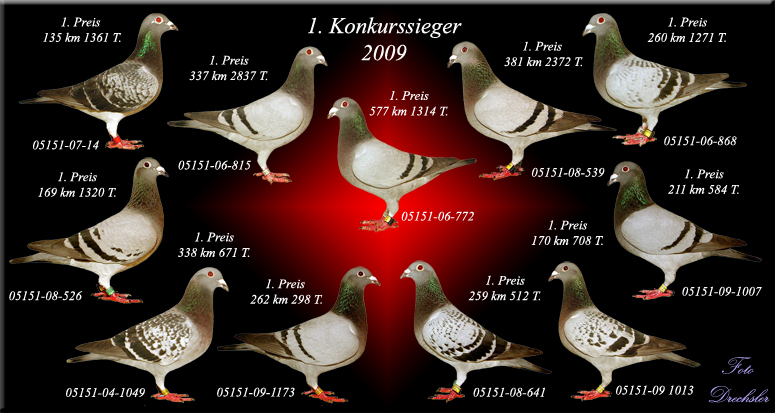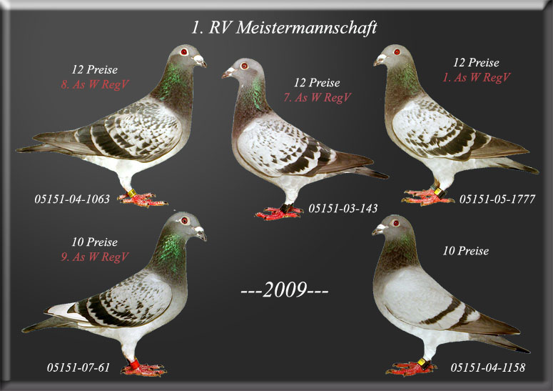 Startseite --- Schlaganlage --- Zuchtaufbau --- Erfolge ---Leistungstauben ---Zuchtpaare Erfolge 2009 |