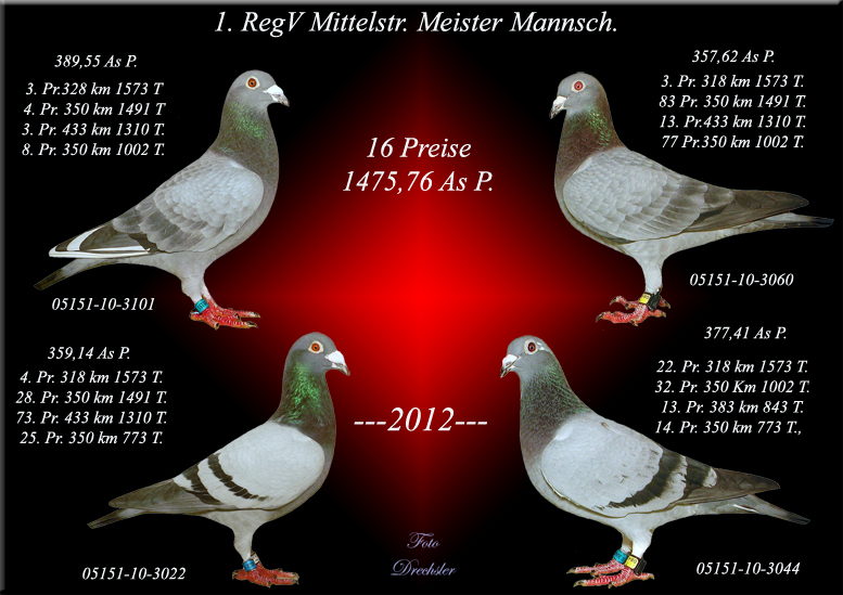 Startseite --- Schlaganlage --- Zuchtaufbau --- Erfolge ---Leistungstauben ---Zuchtpaare Erfolge 2012 |