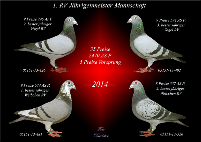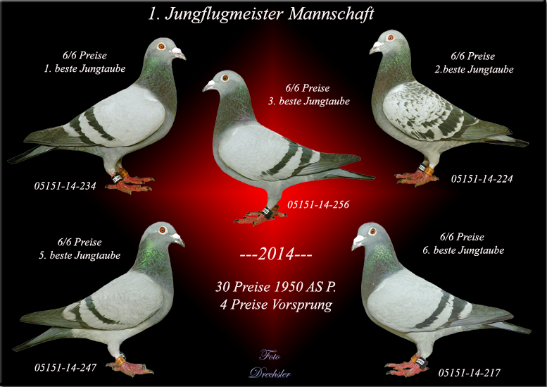 4 Preise Vorsprung, 1,2,3,5,6,7,8,9,10,11,12,16,17,18,beste Jungtaube