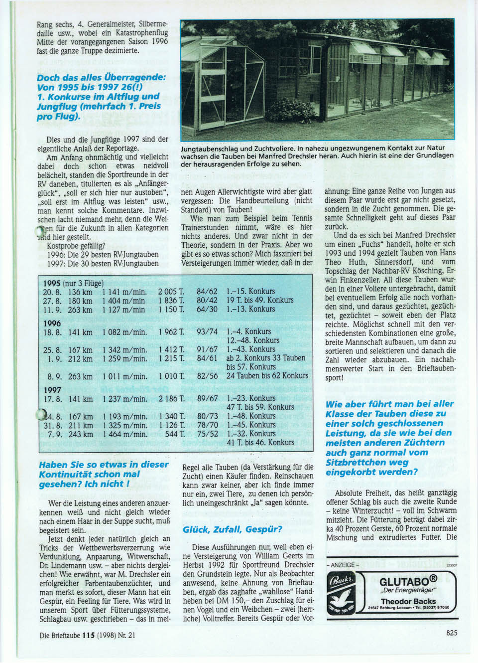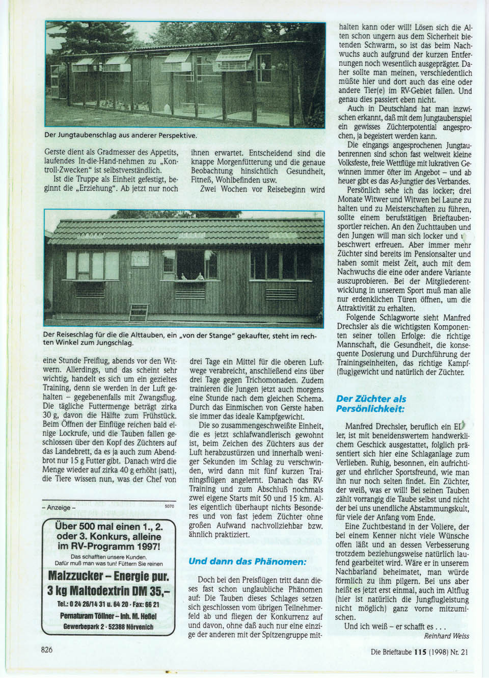unserer Zeit. Im Taubensport besonders hoch angesiedelt.